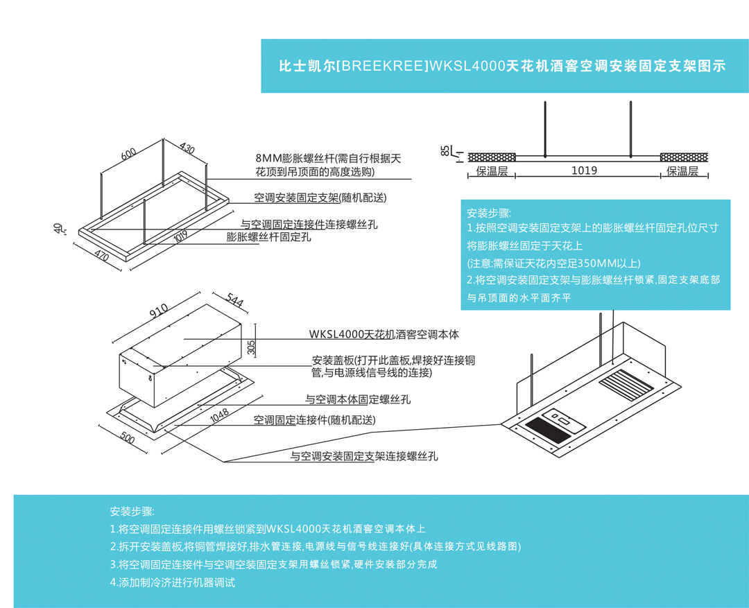 WKSL4000吊顶式天花机酒窖空调固定支架安装示意图