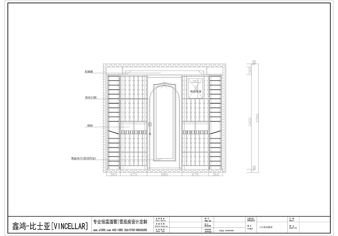 广州恒大中心整体恒温恒湿酒窖设计方案-D立面制作示意图 广州恒大中心酒窖完工酒窖图片A